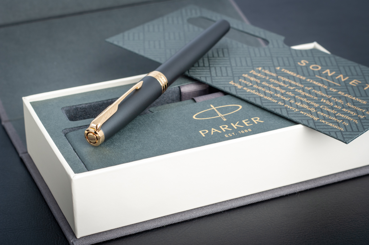 Перьевая ручка Parker Sonnet Matte Black GT от официального дилера Parker в Вологде. Вы можете дополнительно заказать гравировку, которая подчеркнет Вашу оригинальность и придаст памятность статусному подарку. Все ручки Паркер поставляются в фирменном футляре.